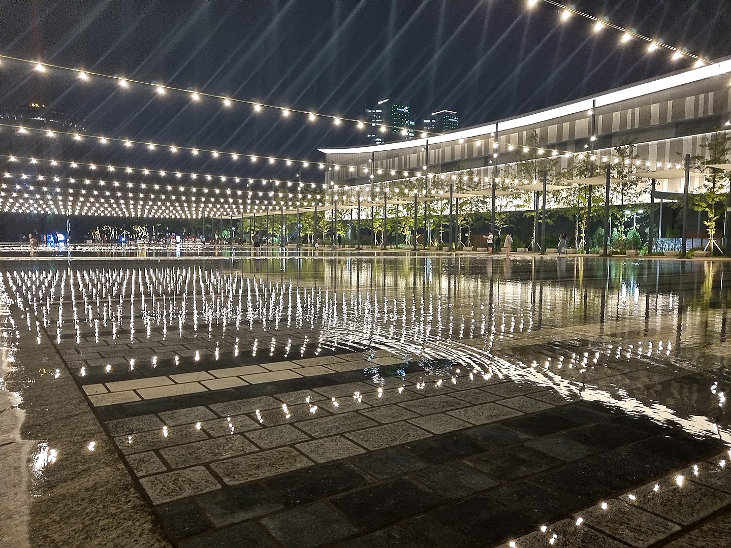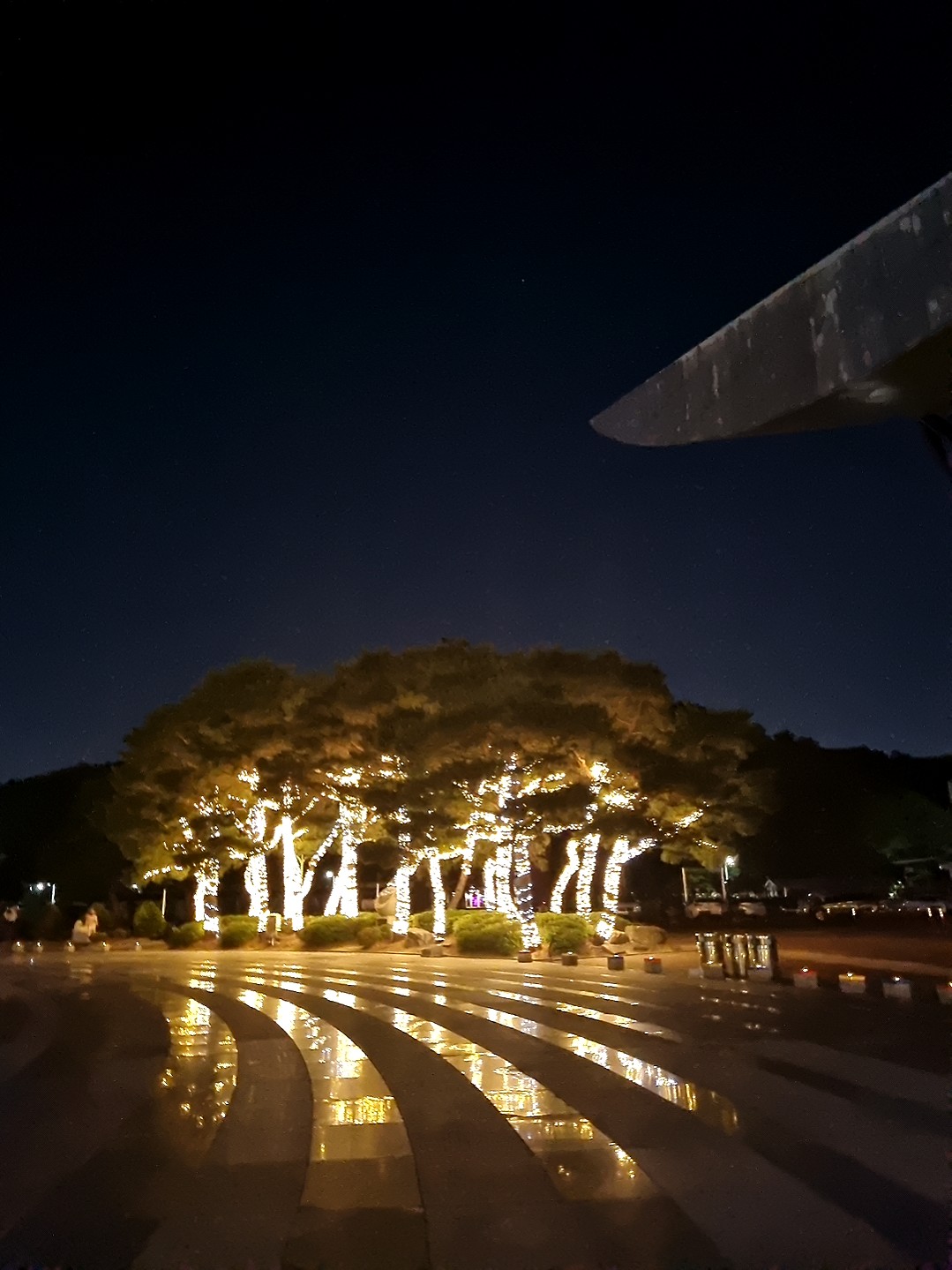 조명으로 둘러싸여있는 멋진소나무 작은숲도 아름다웠어요,분수쇼를 다보고 주변을 둘러보며 산책하다보면 공원을 잘꾸며 놓은거 같아요. 눈을 즐겁게하고 귀도 호강하고 산책하면서 맑은공기에 힐링제대로 하고 가네요.