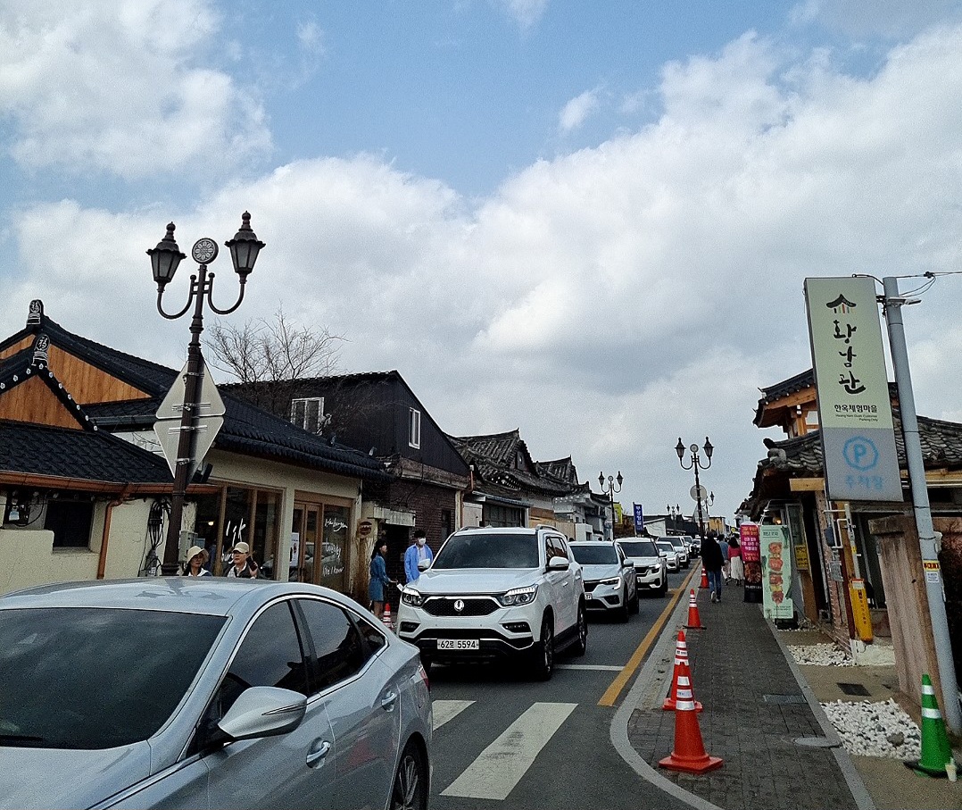 벚꽃구경하느라 사람들과 차들로 분비고 있었다.
